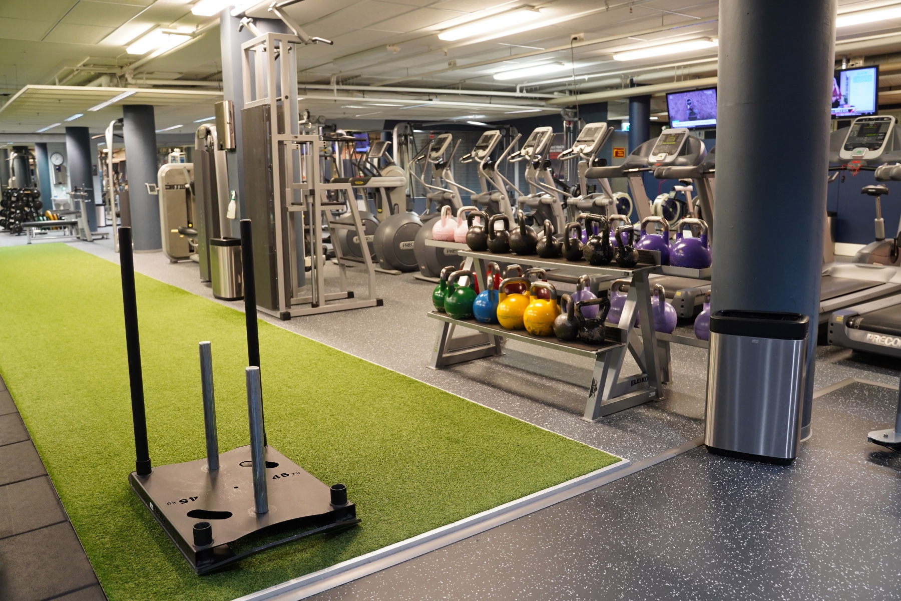 – Meillä on salin puolelle lisätty vapaita painoja, joten niitä riittää kaikille, vaikka paikalla olisi enemmänkin porukkaa. Perinteisempien laitteiden lisäksi vaikka kahvakuulilla ja oman kehon painolla saa tehtyä jo tosi monipuolisen treenin. Keskellä tilaa pääsee myös työntämään kelkkaa, ja nyrkkeilysäkki on vapaassa käytössä, Ketola vinkkaa.