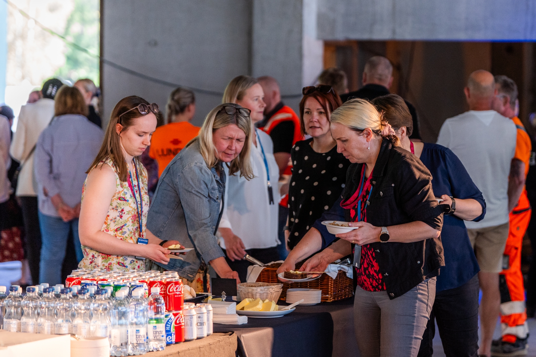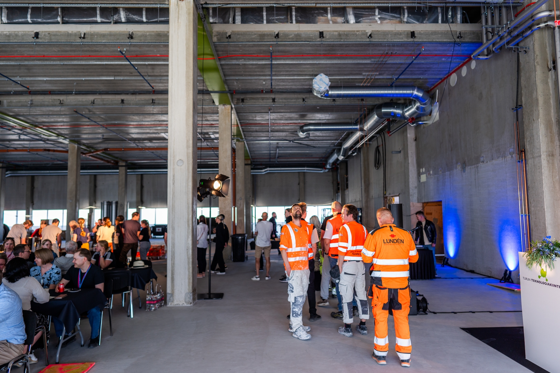 Lounaan jälkeen harjannostajaisvieraat pääsivät vielä tutustumiskierrokselle GeneCityn työmaalle. Tunnelmaa tapahtumaan toi musiikista vastannut dj Pikkumiska.