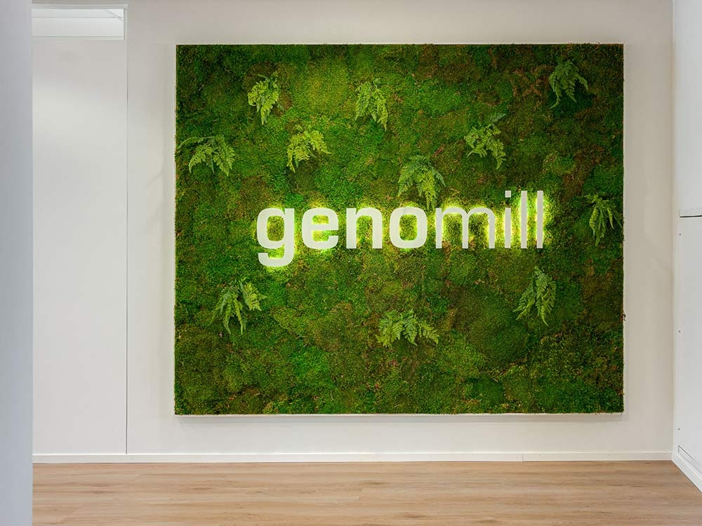 Näyttävä vihreä sammalseinä. Se on ensimmäinen asia, johon vierailijan katse diagnostiikkayritys Genomillin aulassa kiinnittyy. Nähtävää tiloissa riittää toki sen jälkeenkin – etenkin jos ymmärtää jotakin laboratorioista.