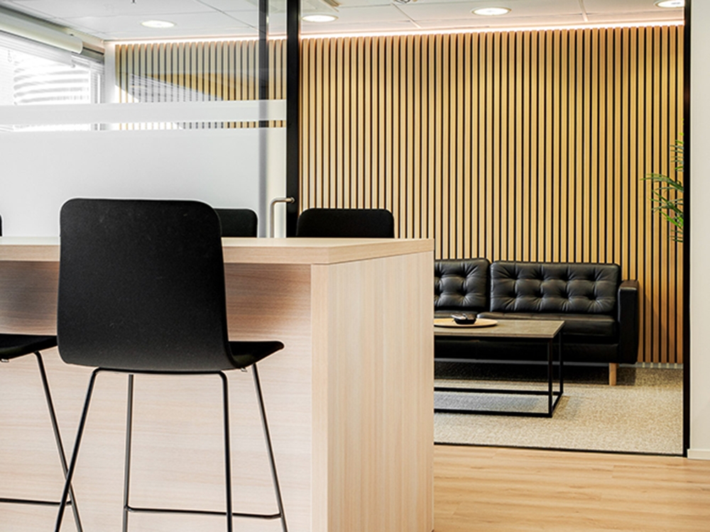 – Minulla oli Pinterestissä kuvia siitä, millaista tyyliä haluamme, esimerkiksi puuritilöitä, viherseiniä ja epäsuoraa valoa. Niiden pohjalta Teknologiakiinteistöt loi meille ajattoman tilan, jossa voisi varmasti yhtä hyvin toimia vaikka asianajotoimisto. Ratkaisut toteutettiin kustannustehokkaasti ja kaikki vanhat materiaalit lähtivät kierrätykseen.