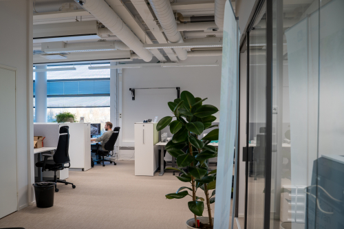 – Haimme kokonaiskustannuksiltaan järkevää kokonaisuutta. Tässä on parkkipaikat aivan vieressä ja helppo lähteä eri suuntiin. Tila tukee työnantajan imagoa ja henkilökunnallekin on statusjuttu, että ollaan näin hyvällä paikalla. Meillä on itsenäiset työt, ja työtä on mahdollista tehdä etänäkin, mutta pääasiassa ihmiset ovat toimistolla. Se on mukavaa, sillä läsnäolo kuitenkin helpottaa kommunikaatiota ja viihdymme yhdessä. Olemme hymyssä suin ja iloisia, että meillä on näin hyvät tilat, Kauhaniemi päättää.