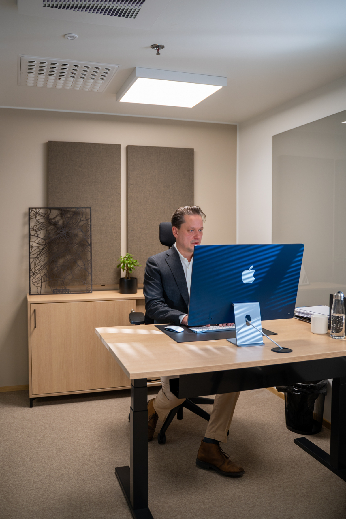 – Tila on juuri meidän tarpeisiimme sopiva, kaikki on edustavaa ja hienoa. Ja töihinkin on mukavampi tulla, kun siellä on tyylikästä. Lakiasiat on myös toimiala, jossa asiakas odottaa näkevänsä tiettyä tyyliä ja kertoohan toimiston ulkonäkö myös meistä yrityksenä.