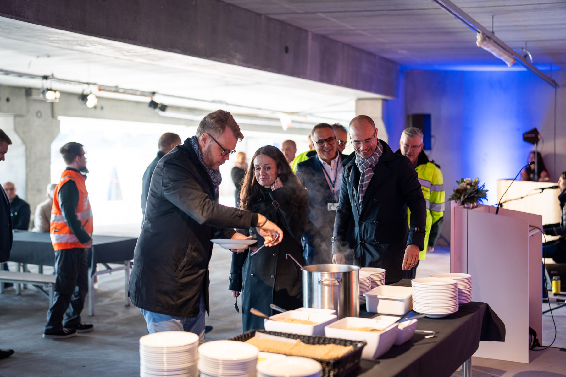 Tarjolla harjannostajaisissa oli hernekeittoa ja pannukakkua sekä kakkukahvit. Teknologiakiinteistöjen puolesta tilaisuudessa puhui hankkeen rakennuttajana toimiva Miika Tuominen. YIT:n sanat puolestaan lausui YIT:n Lounais-Suomen aluejohtaja Jyrki Meri. Musiikista tapahtumassa vastasi pianisti-laulaja Eveliina Jaatinen.