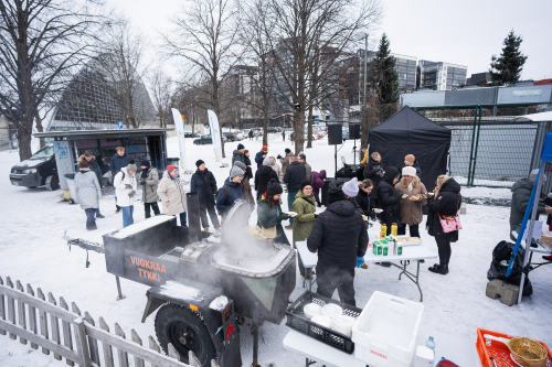Yhteinen tapahtuma tarjosi mahdollisuuden luisteluun, ulkoiluun sekä tietenkin lounaaseen: hernekeittoon ja laskiaispullaan. Tapahtuman tarjoilut hoiti Unica ja tunnelmasta piti huolen Dj PikkuMiska.
