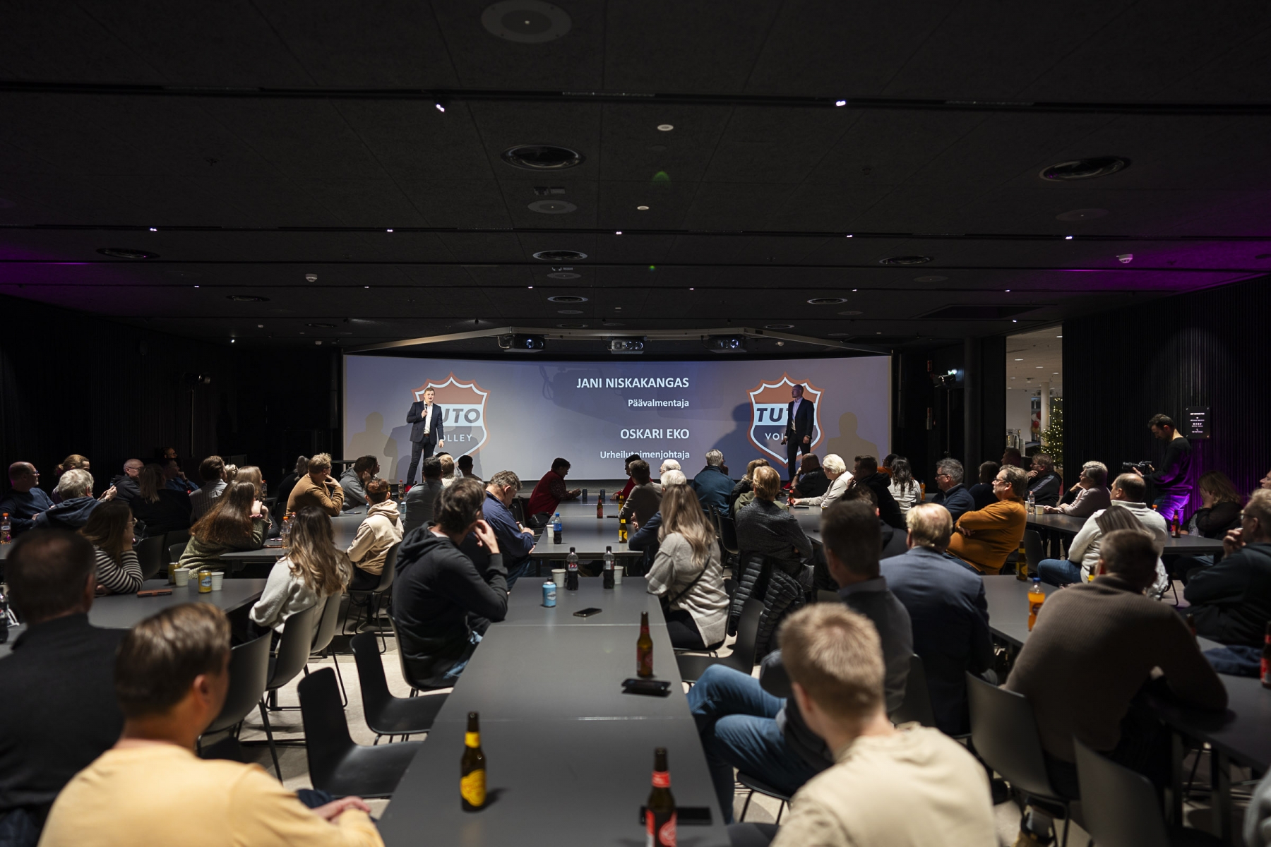 Haastateltavaksi lavalle hyppäsi myös vieraiden joukossa ollut TUTO Hockeyn toimitusjohtaja Kimmo Hollmén, joka pääsi kertomaan TUTOn jääkiekkojoukkueen viimeisimpiä kuulumisia sekä yhteistyöstä jääkiekon ja lentopallon kesken. TUTO Volley pelaa seuraavan kerran Kupittaalla lauantaina 2.12., jolloin on myös TUTO Hockeyn kotiottelu. Päivästä onkin luvassa urheiluntäyteinen, sillä Mestis-ottelun lipulla pääsee myös TUTO Volleyn otteluun, sekä TUTO Volleyn ottelulipulla pääsee katsomaan jääkiekkoa.