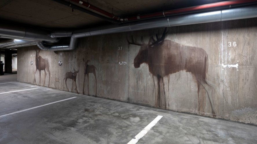 Parkkihalliin kulkeutuu autojen mukana maantiesuolaa, maantiepölyä ja pakokaasussa olevia pienhiukkasia. Rauta- ja pronssilevyistä koostuva veistos patinoituu ajan myötä ja saa sitä rikkaamman elämän, mitä enemmän saasteita sen pinnalle kulkeutuu.