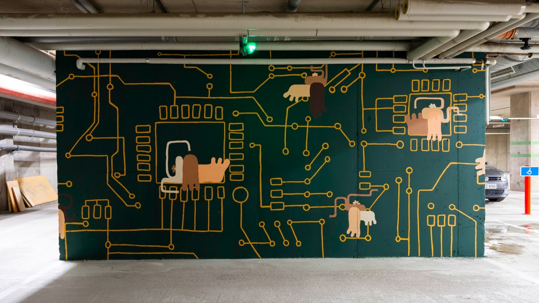 Teos on saanut inspiraationsa tietokoneen piirilevystä, jonka muotokieltä taustan kuvionti kuvastaa. Teos nostaa esiin ihmisen roolin teknologian luojana ja muistuttaa katsojiaan siitä kuinka kaiken teknologian ja tekoälyn takana on oikea elävä, hengittävä ihminen.